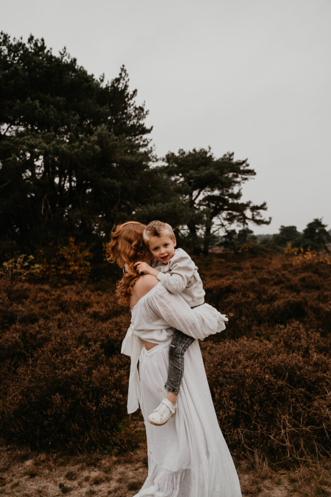 knuffelmoment tussen moeder en kind gezinsshoot Drenthe shoot